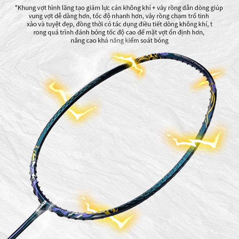 Venson VS Dragon Pattern Badminton Racket, Đan lưới trợ lực VS BG7, Full Carbon Fiber 4U Ultra-Light, Offensive Professional Training Single Racket, including 1 Pre-strung Racket, 1 Grip Tape, 1 Racket bag